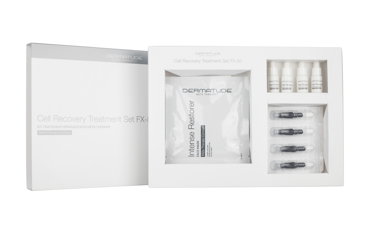 Deze Dermatude behandelset voor professioneel gebruik bevat de producten die nodig zijn tijdens een Meta Therapy behandeling. De inhoud van de box is voldoende om 4 behandelingen uit te voeren. Bevat 4x 18-punts modules, 4x Balancing Subjectables en 4x Intense Restorer Face maskers.