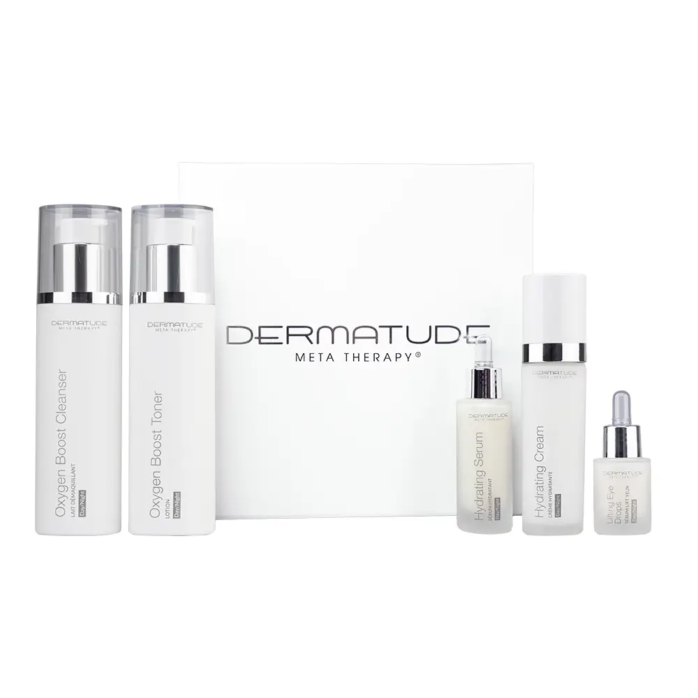 Voor een optimaal resultaat is het gebruik van Dermatude huidverzorging tijdens een kuur met Meta Therapy behandelingen vereist: dit zal helpen de behandelingsresultaten te verlengen en bijdragen aan een maximaal effect. Deze vooraf samengestelde set bevat alle noodzakelijke Dermatude huidverzorgingsproducten voor thuisgebruik.